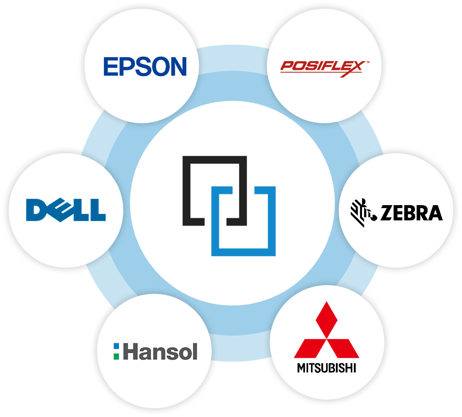 Epson, Posiflex, Zebra, Mitsubishi, Hansol, Dell, and others.